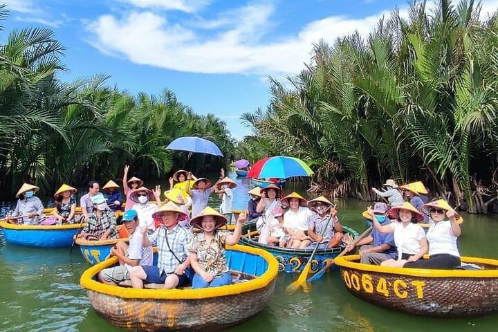 Embark on a memorable journey with hotel pickup from Da Nang or Hoi An, exploring the enchanting Coconut Jungle, Hoi An Ancient Town, and a serene evening boat ride. Start with an exciting basket boat adventure in the lush Cam Thanh Coconut Forest, immersing yourself in local life and natural beauty. Continue your tour through Hoi An’s historical landmarks, including the iconic Japanese Bridge and ancient temples. As night falls, participate in the beautiful tradition of releasing a flower lantern on the Hoai River, illuminating Hoi An in a magical glow. This tour offers a perfect blend of culture, history, and nature.